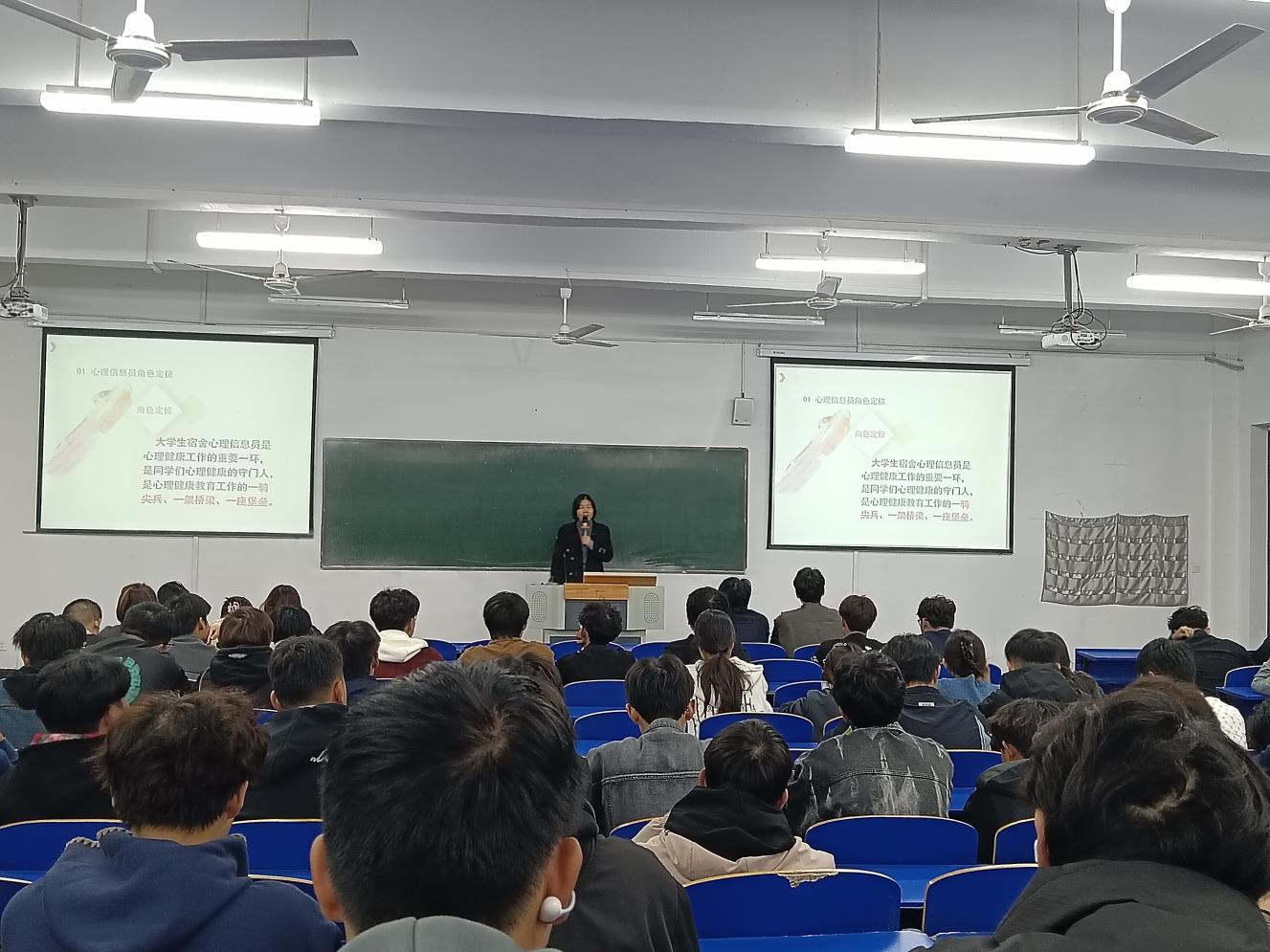 培训为心理委员及心理信息员指明了角色定位和工作职责,分析了造成宿舍人际冲突的原因及应对策略,对心理危机的识别、排查与预防均进行了讲解。心理委员和心理信息员纷纷表示,通过今天的培训,了解了心理健康教育中心的功能,为今后朋辈帮扶工作的开展打下良好的基础。