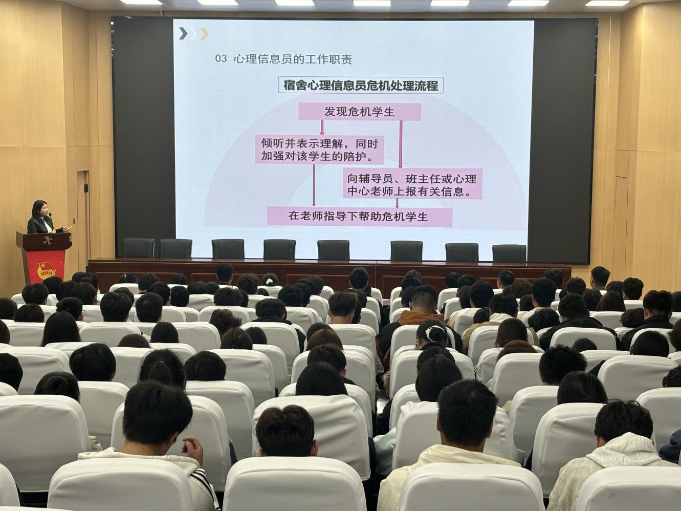 为进一步加强学院心理健康教育工作,提升朋辈帮扶能力,进一步织牢“心理健康中心-二级心理辅导站-班级心理委员-宿舍心理信息员”四级预警心理网,10月14日下午,心理健康教育中心刘慧玲和徐慧茹为2025级全体心理委员及心理信息员进行培训。