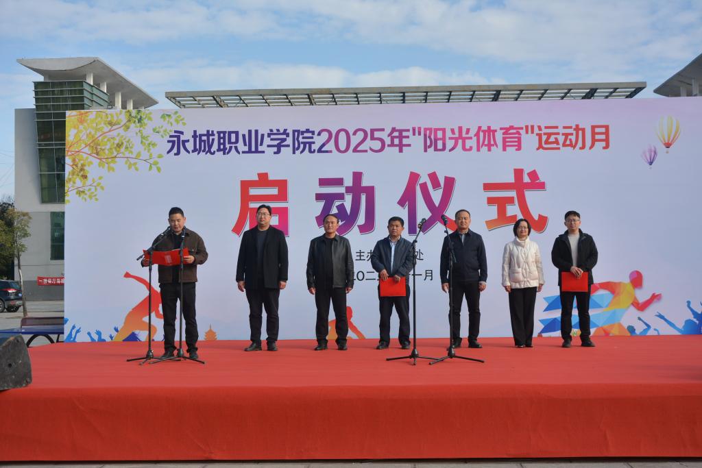 最后,他宣布永城职业学院2025年“阳光体育”运动月活动开幕!